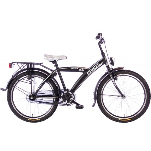 Als u op zoek bent naar een stoere jongensfiets 22 inch, dan is de Spirit Alpha 22 inch jongensfiets iets voor u. Met deze fiets zult u merken dat uw zoontje niet meer van zijn fiets af te krijgen is. Lekker middagen rondscheuren met vriendjes en op de fiets naar school. De schooltas kan tenslotte gewoon achterop de bagagedrager.Bovendien kan er veilig geremd worden met zowel de terugtraprem als met de handremmen. De verlichting zorgt ervoor dat de fiets ook in het donker goed zichtbaar is. Kleding blijft mooi schoon door de kettingbeschermer. De stoere Spirit Alpha jongensfiets is de juiste fiets voor uw zoon. De fiets wordt momenteel geleverd zonder snelbinders.